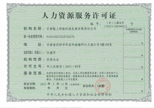 工信部备案号: 陇ICP备17001120号-1 增值电信业务经营许可证: 甘B2-20230026 人力资源服务许可证: (甘)人服证字[2025]1005000113号平台资质